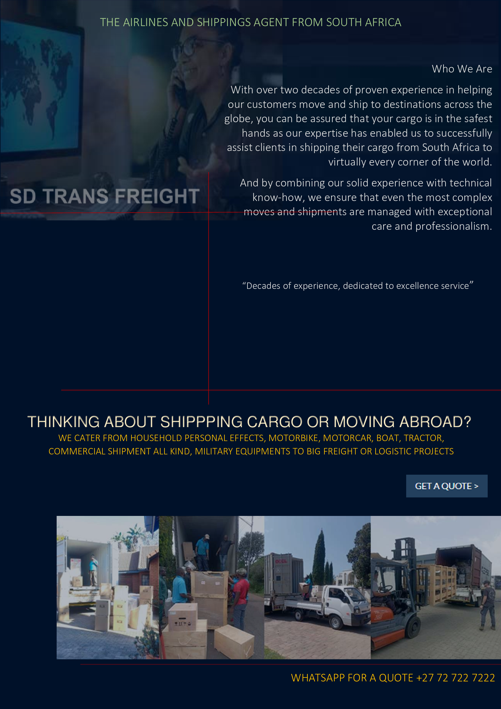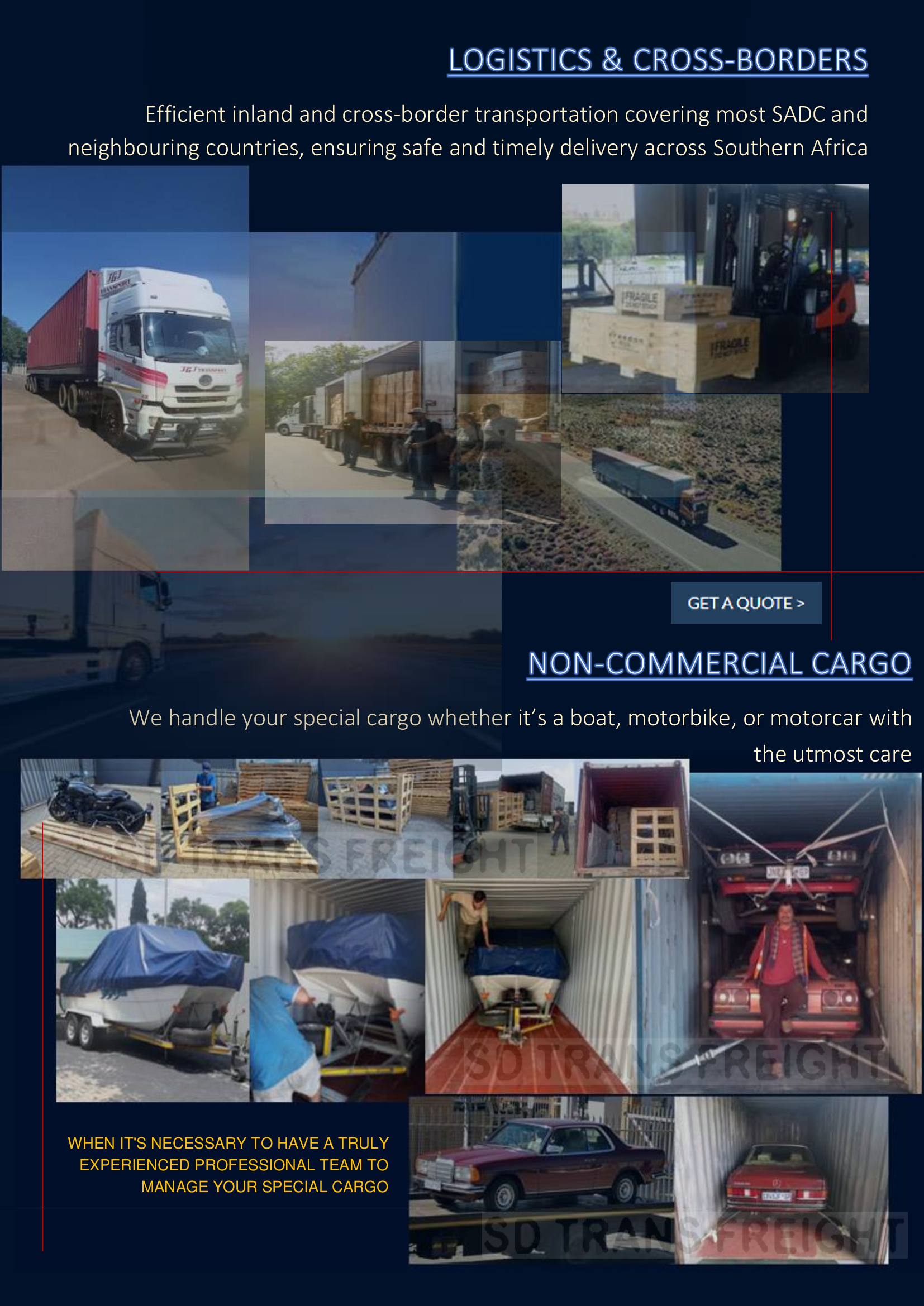 “Thank you, you have delivered the promised service SD TRANS FREIGHT”